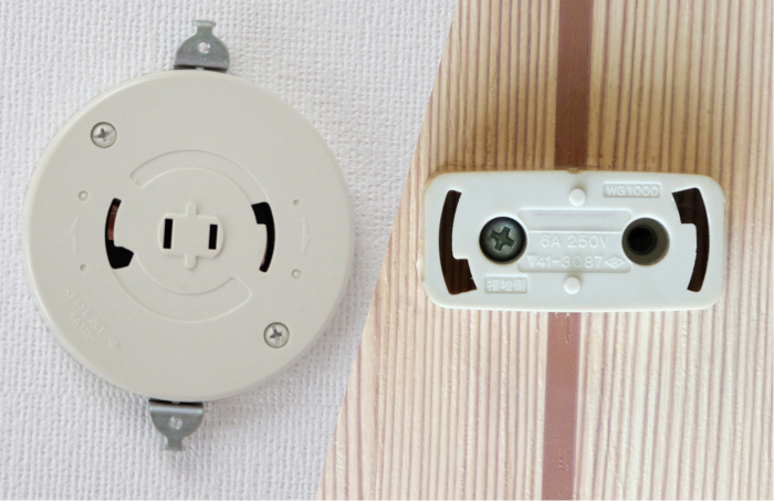 天井の照明用コンセントの形状は物件によって異なります。「丸型」「角型」等のタイプがありますので、お手持ちの照明器具がそのまま取り付けられるか事前に確認しておきましょう。